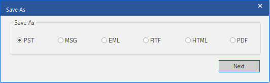 • Multiple export formats: PST, EML, MSG, RTF, HTML, PDF