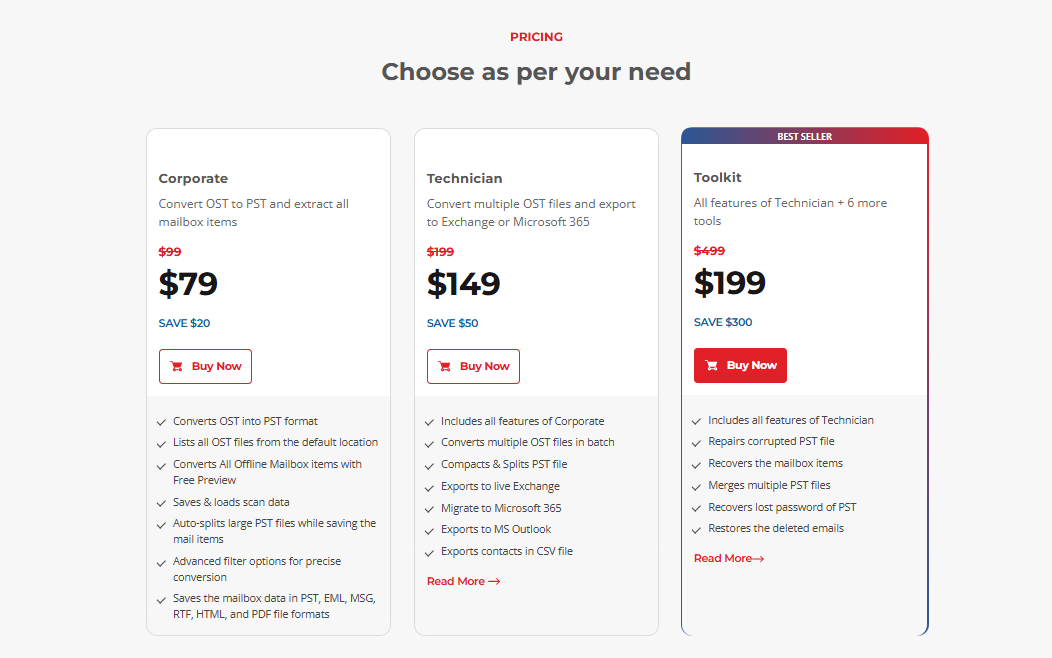 We opted for the Corporate version ($79), perfect for one-time emergency conversions. However, if you manage multiple OST files or require batch processing, the Technician ($149) and Toolkit ($199) editions offer enhanced features.